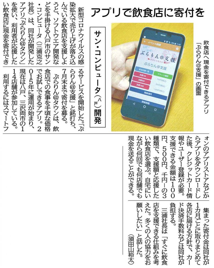 ところで、こちらのイベント「ぶらりん@支援」ですが、先日5/15(金)のデーリー東北の紙面で紹介されました。