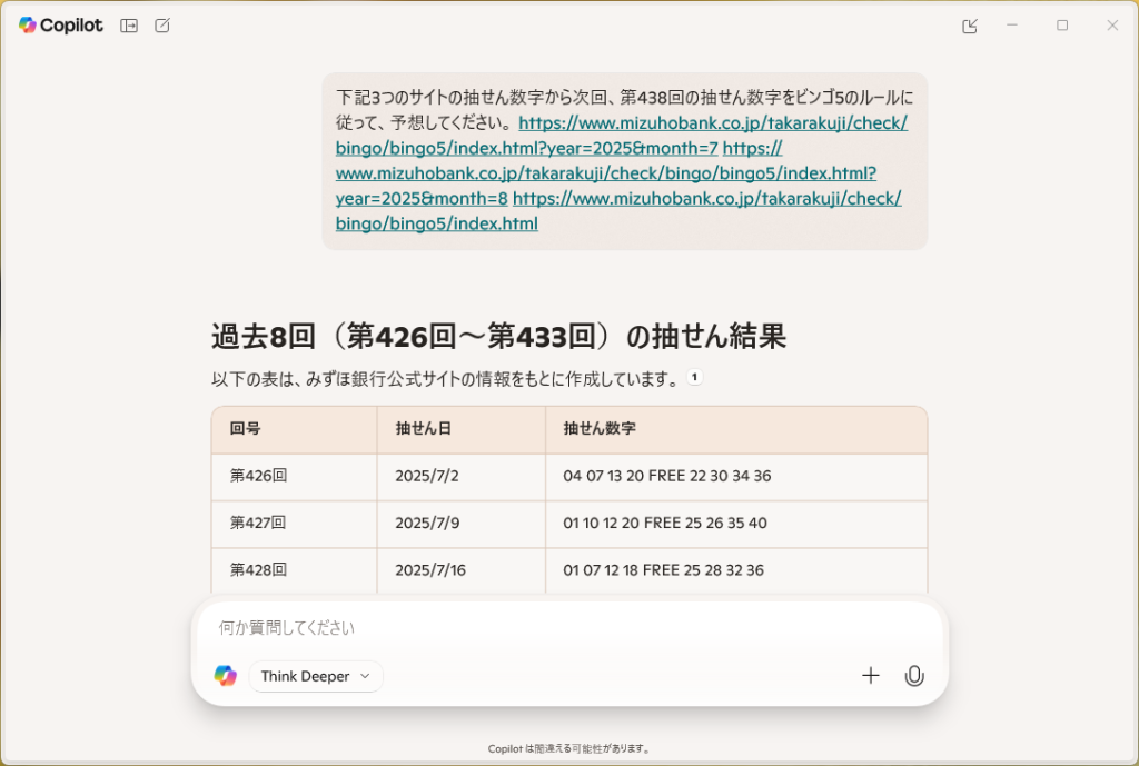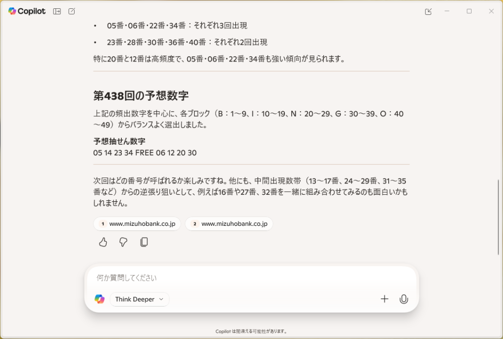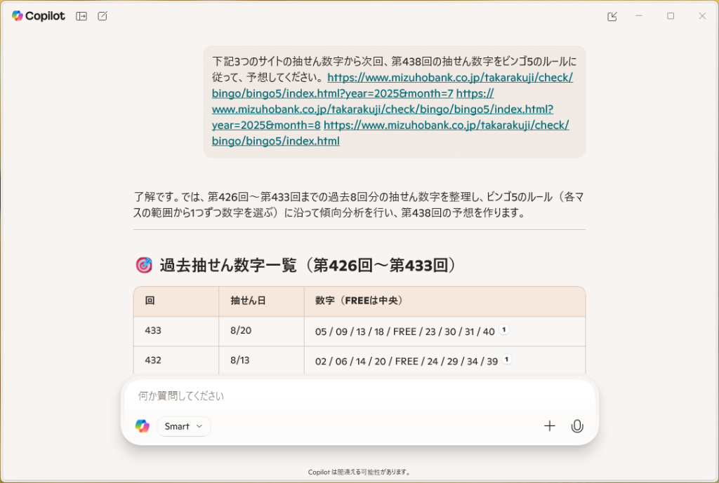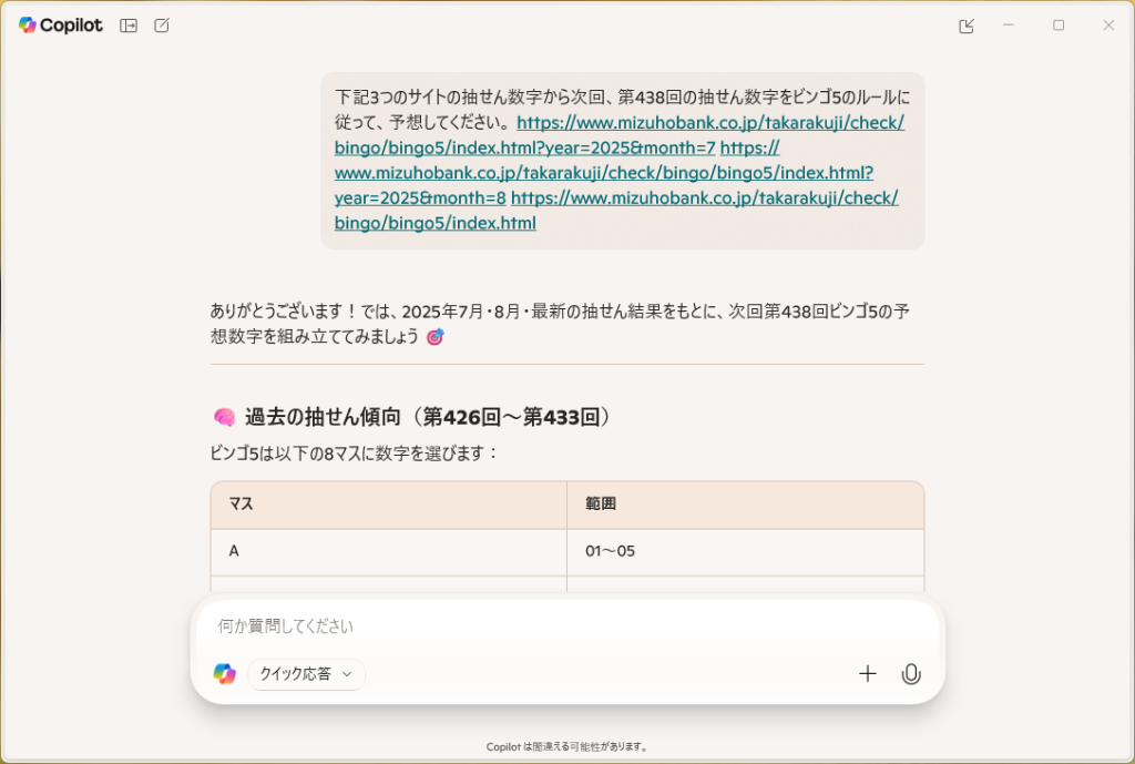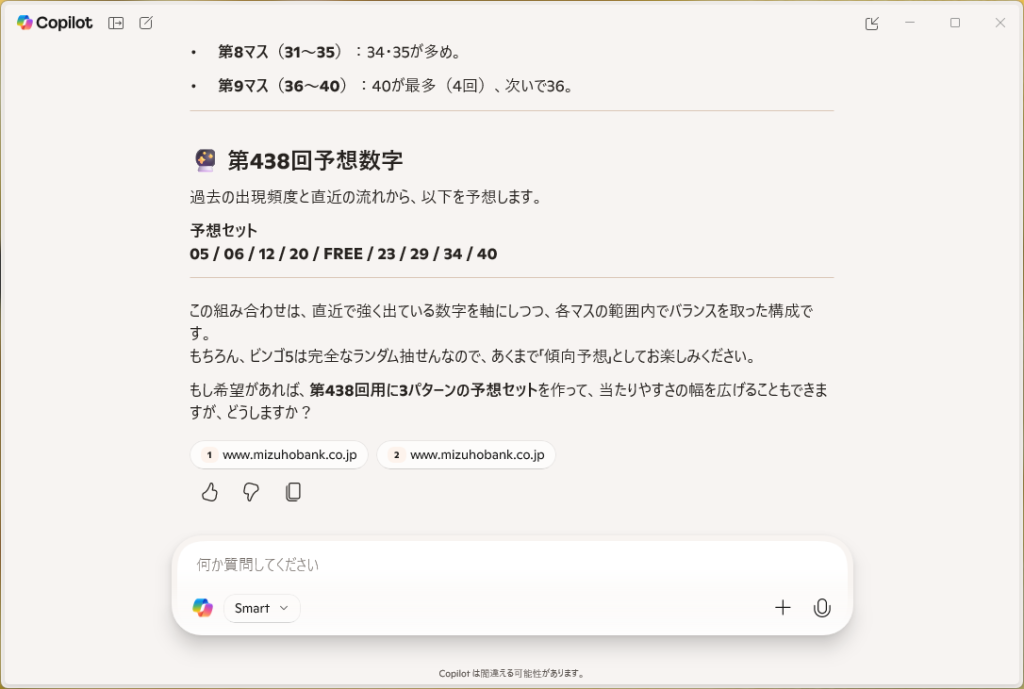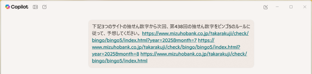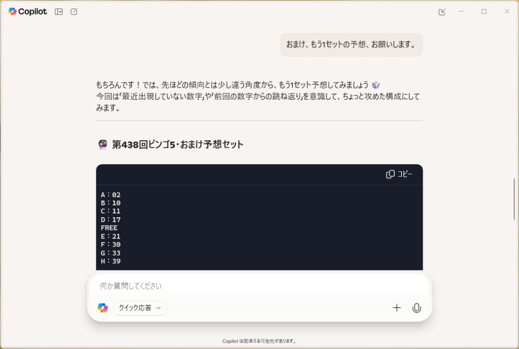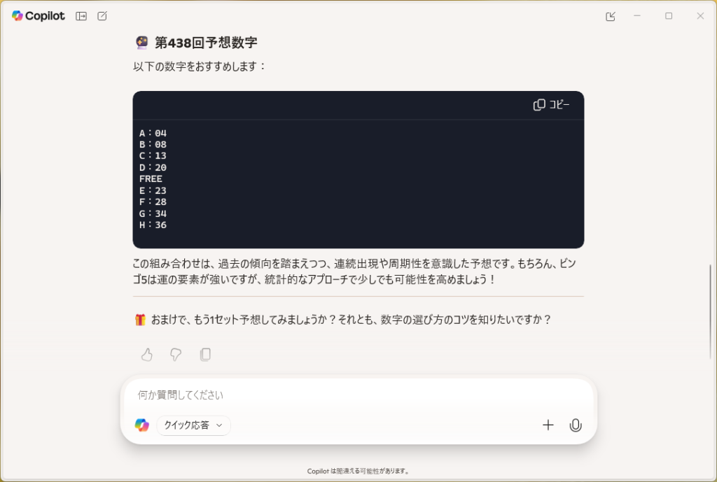 Copilot in Windowsは、予知できるか?(ビンゴ5編) その2