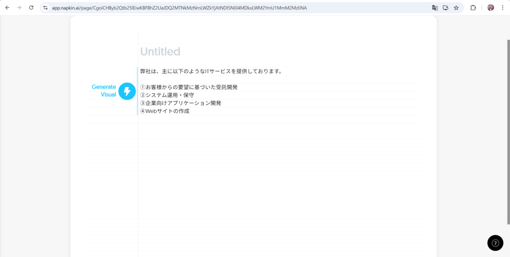 本記事では、資料作成の効率化に役立つツール「Napkin AI」について、実際の操作手順と活用例を交えて紹介します。