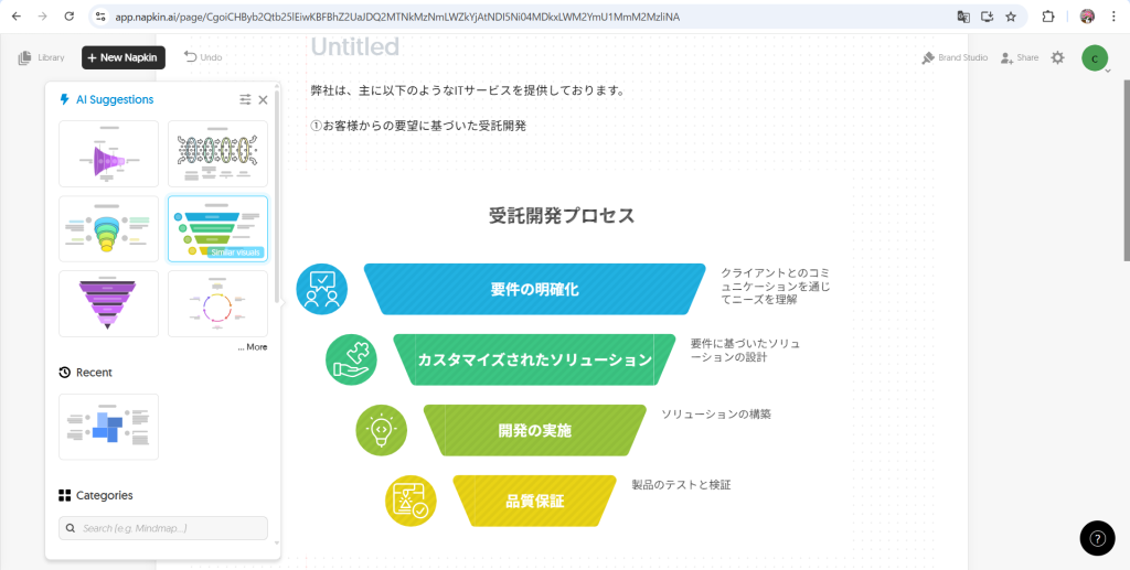 このように、Napkin AIは資料作成の効率化や見やすさの向上に役立つツールです。