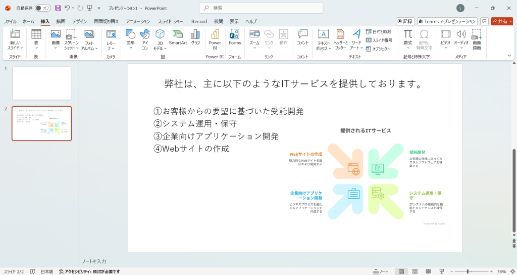 PowePointの資料に追加してみましょう。